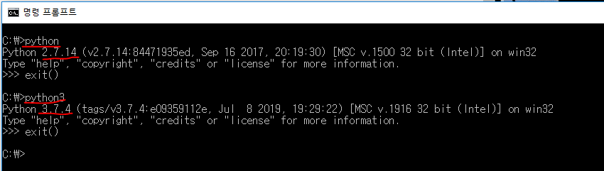 ex) 만약, python2버전은 cmd에서 python으로 실행하고, python3 버전은 cmd에서 python3로 실행하고 싶은 경우,