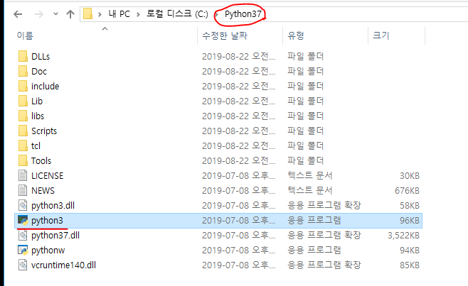 python3 폴더 안에 python.exe파일을 python3.exe로 변경해 줍니다.