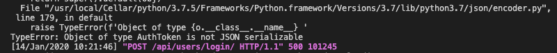 | TypeError: Object of type AuthToken is not JSON serializable |