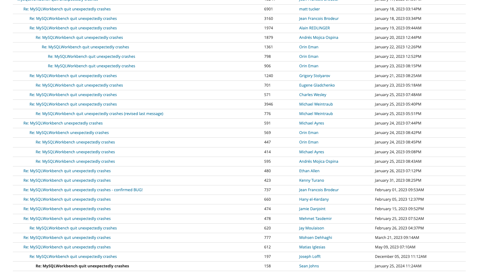 Ventura 13 으로 macOS 업데이트 후 기존에 설치되어 있던 Workbench 를 실행하면 "MySQLWorkbench 응용 프로그램이 예기치 않게 종료되었습니다." 메세지가 나오면서 Workbench 가 실행되지 않았습니다. 무시해도 계속 무한반복으로 떴습니다...