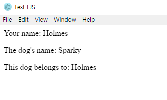- dog.ejs에 Sparky 값을 갖는 name 키를 전송하게 된다.