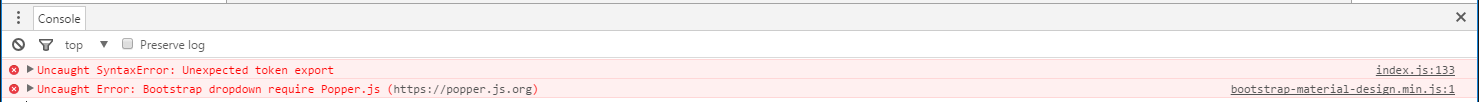$ npm i popper.js 로 popper 를 설치 한 후 HTML에 추가하니 또 오류가 발생했다.