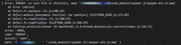 popper.min.js파일을 인터넷에서 다운 받은 후 HTML 에 추가하니 아래와 같이 ENOENT 파일을 찾을 수 없다는 오류가 발생했다.